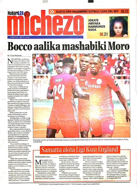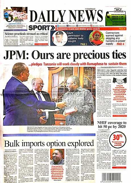 Tanzanian Today's Newspapers MAGAZETI YA LEO Monday 27th May, 2019